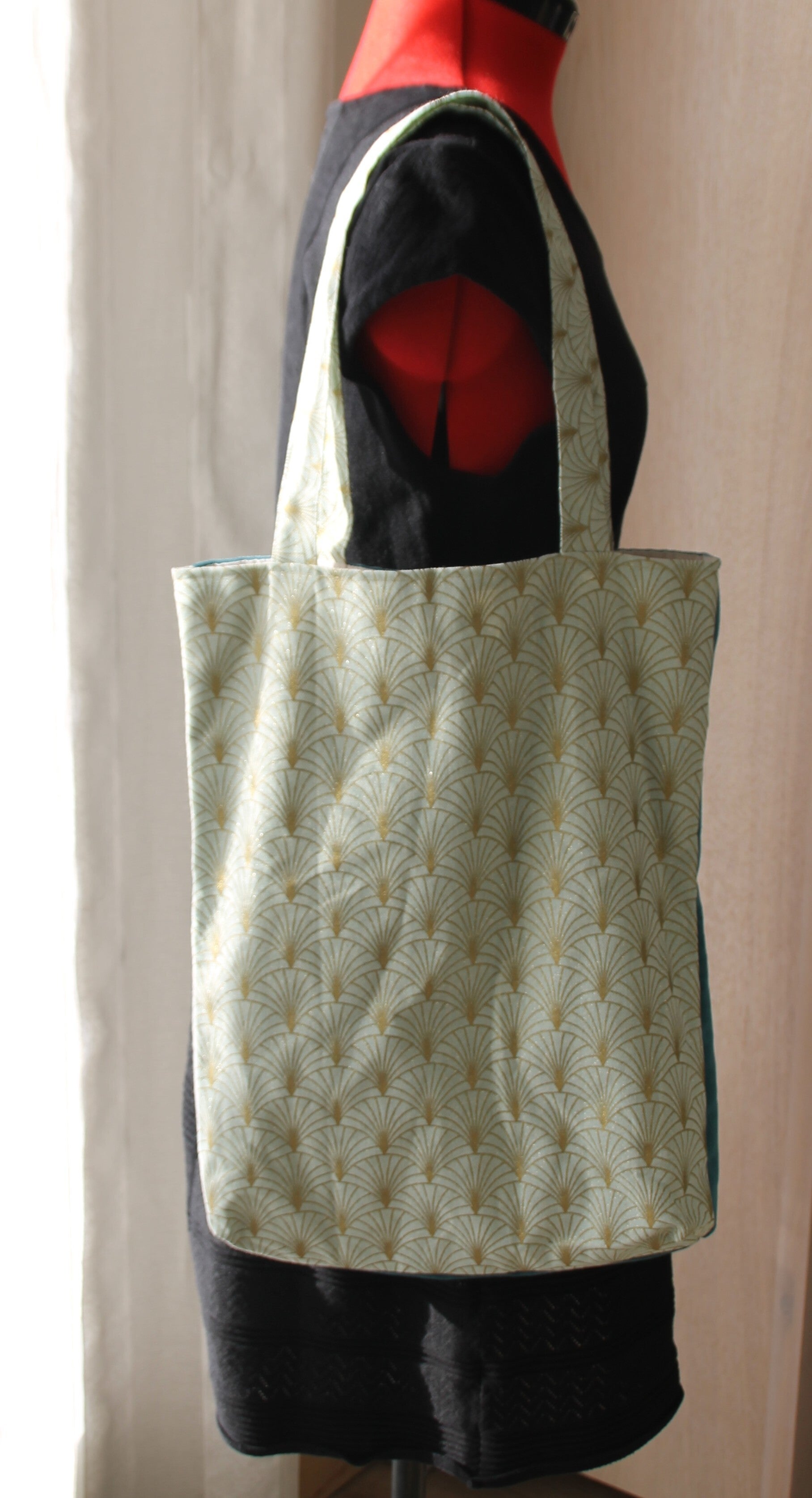 Tote complice -Palmiers dorés / vert menthe
