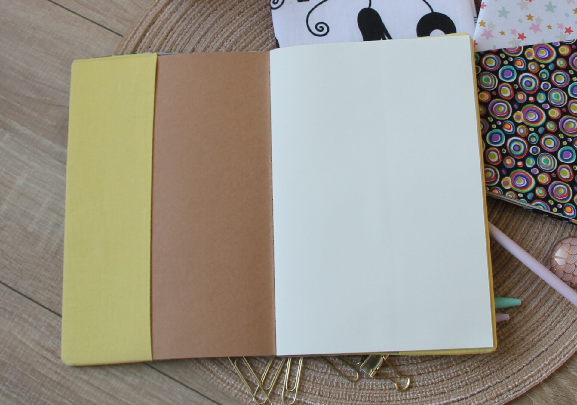 Carnet et sa couverture en tissu, idéal pour le dessin, les croquis ou l’écriture du quotidien. Souple et léger, il se glisse facilement dans un sac pour vous accompagner partout : en balade, en voyage ou lors de vos moments créatifs.