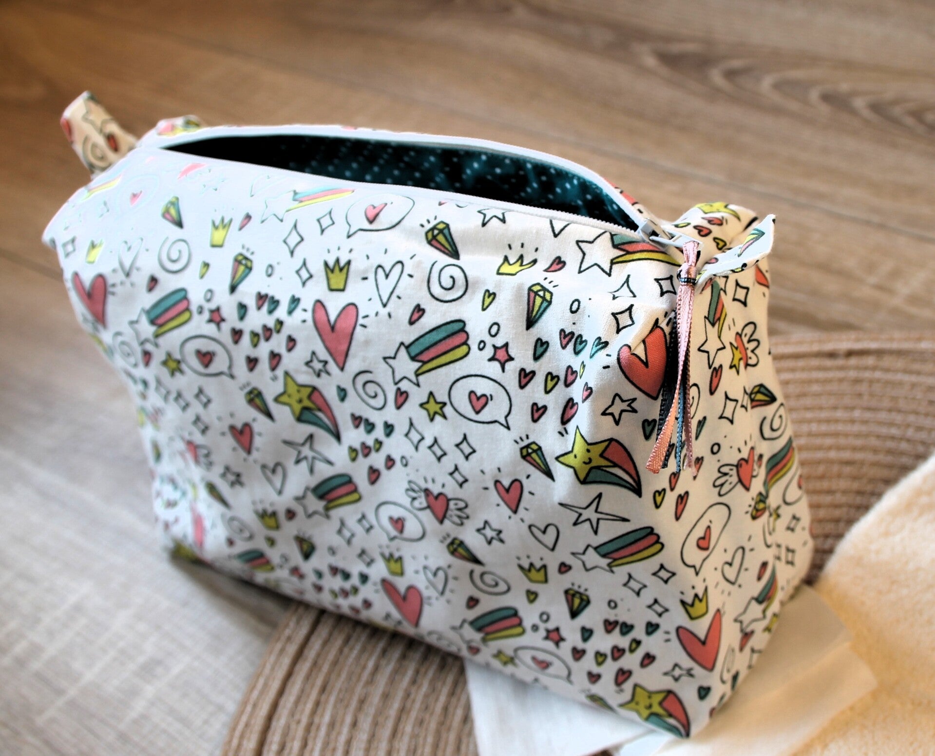 Trousse nomade - Coeurs et étoiles "kawai"