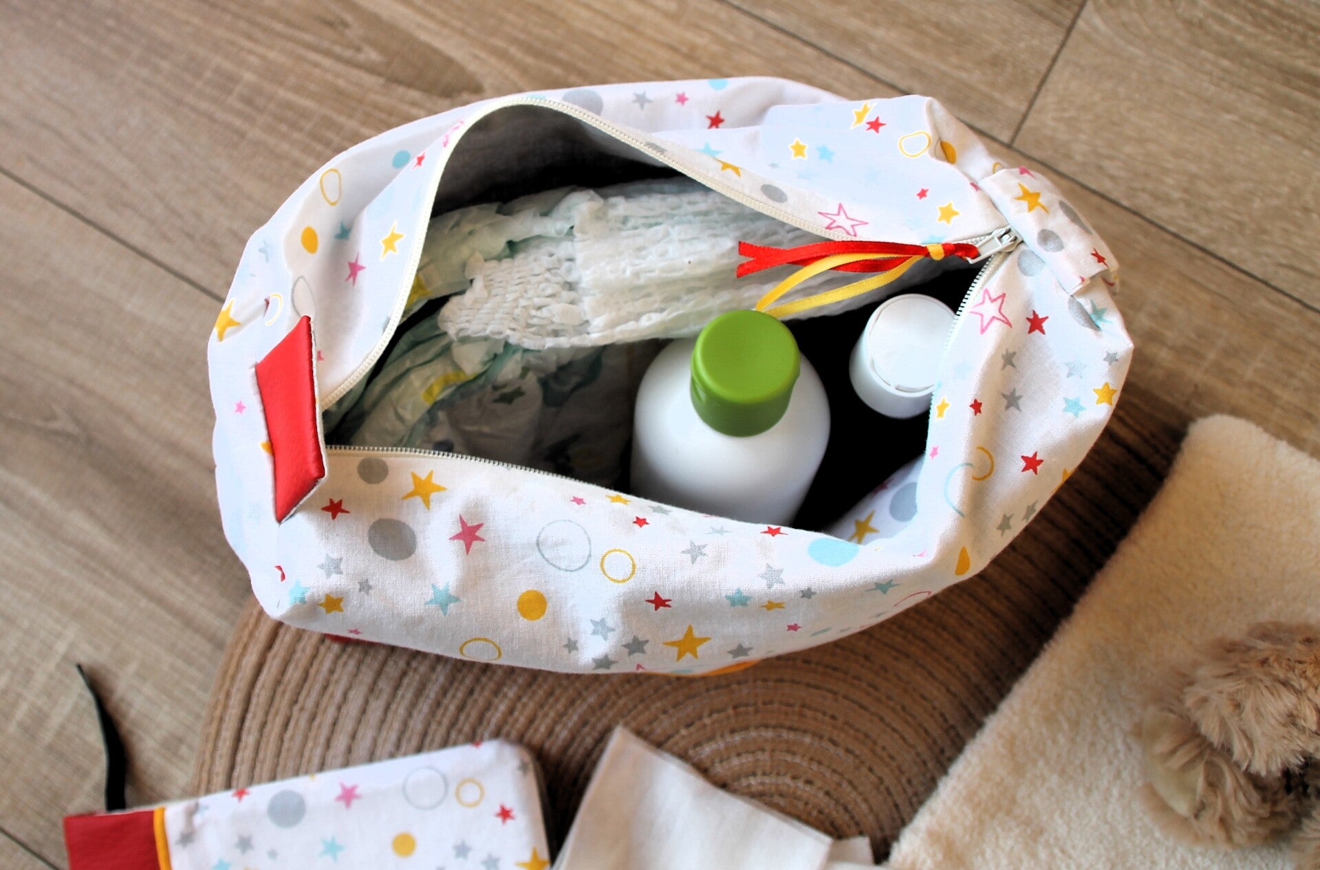 Cette trousse nomade en tissu est l’alliée idéale pour les sorties avec bébé en gardant à portée de main couches, lingettes, crème... Son tapis à langer intégré, doux et facile à nettoyer, offre un espace propre et confortable pour changer bébé où que vous soyez.