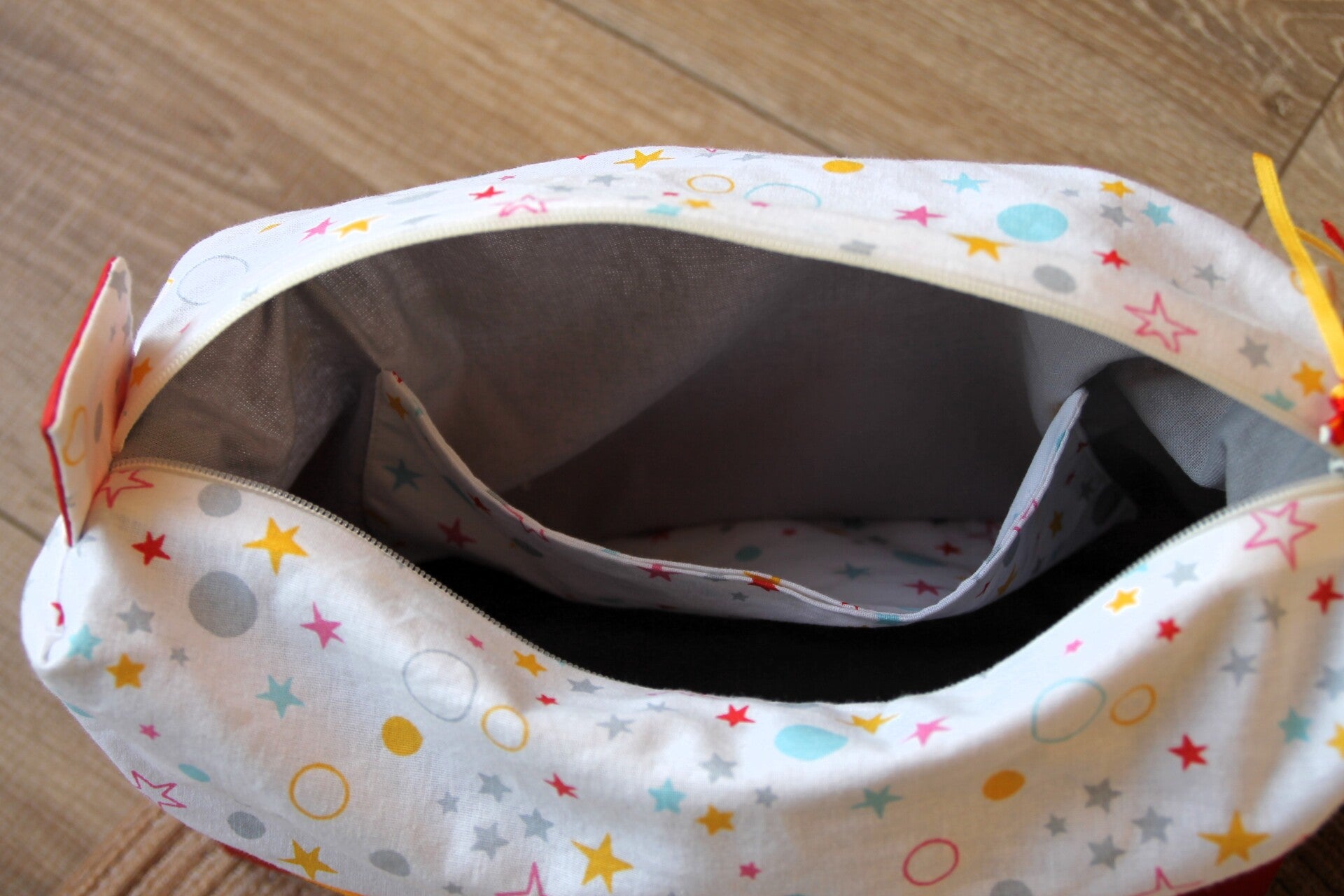 Trousse nomade - Confettis-étoiles / simili rouge